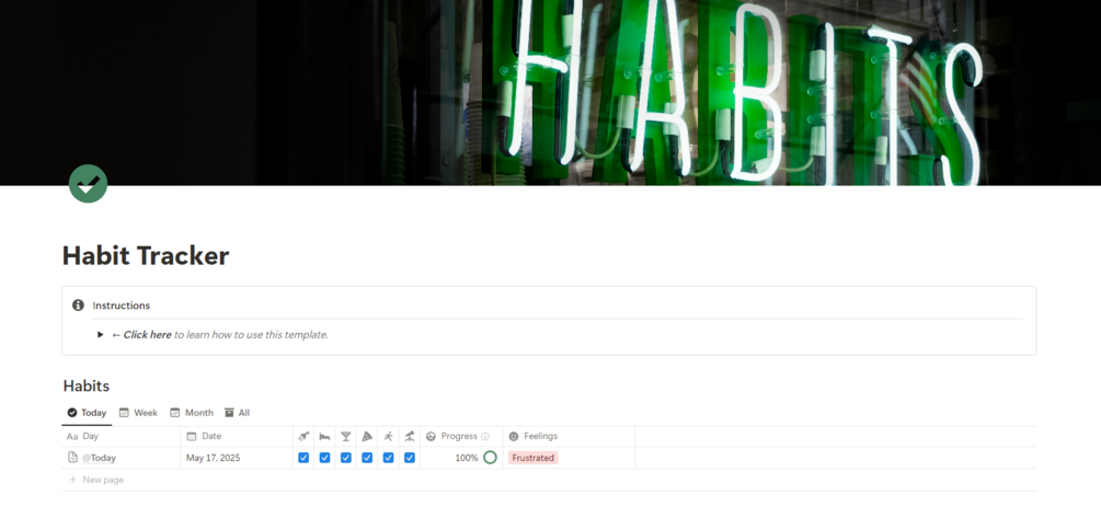 Take control of your daily routines and goals with this simple yet powerful Habit Tracker template β 100% free to use!